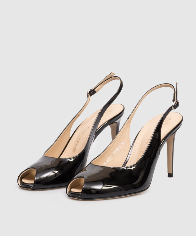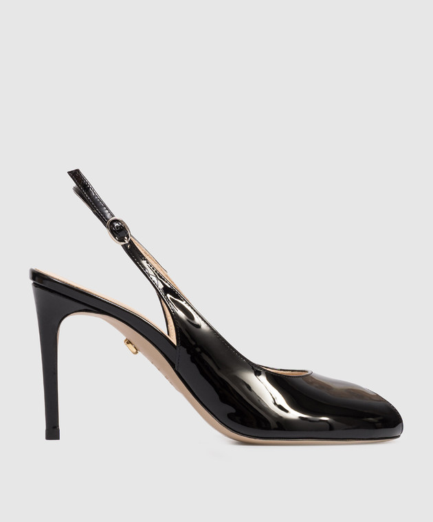 Чорні шкіряні лаковані слінгбеки