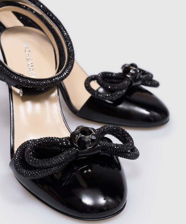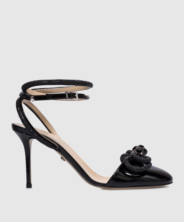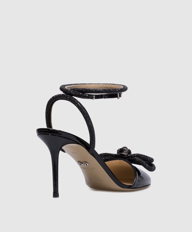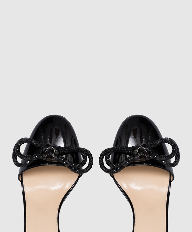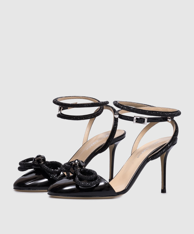 Чорні шкіряні лаковані слінгбеки DOUBLE BOW з кристалами