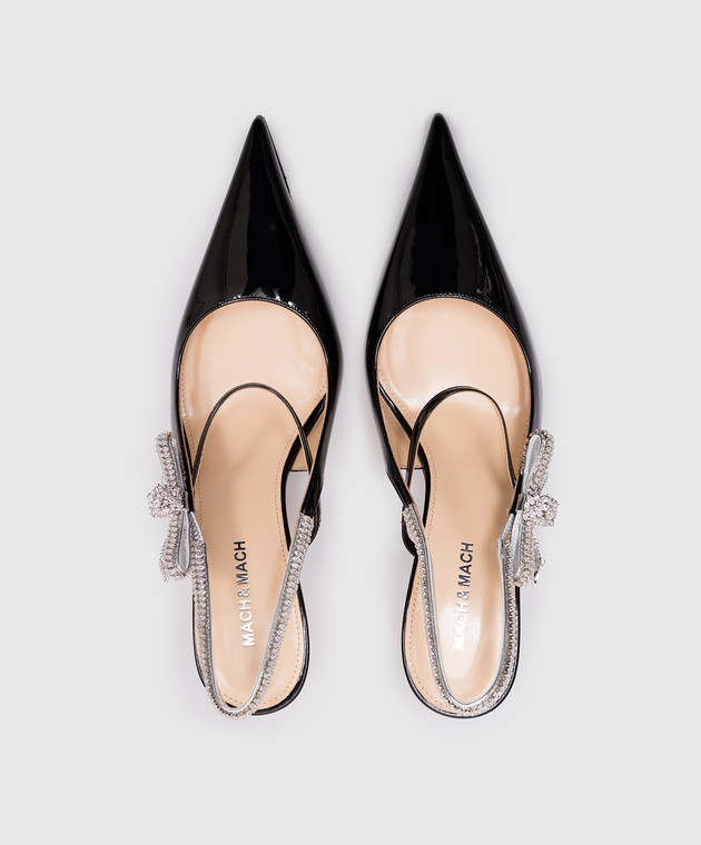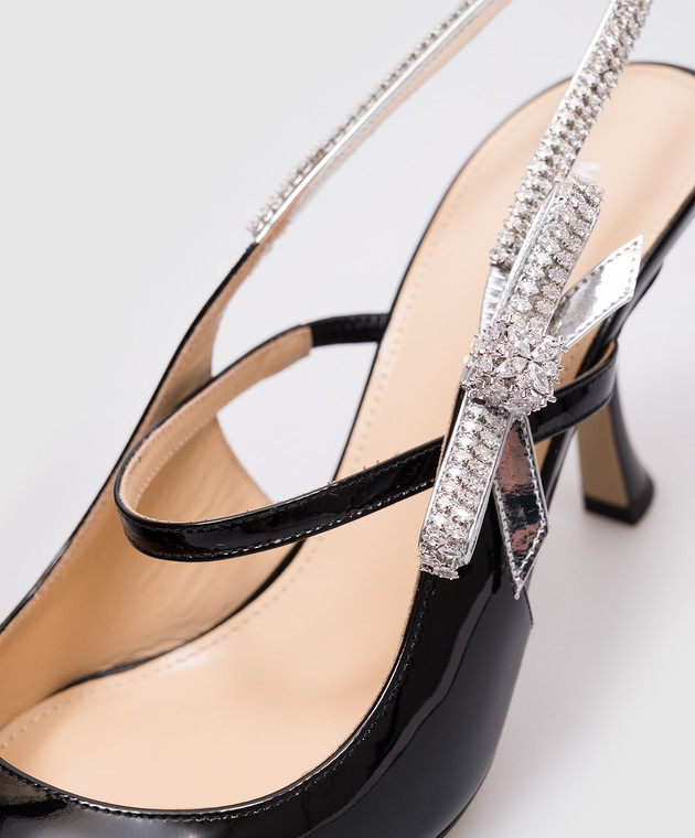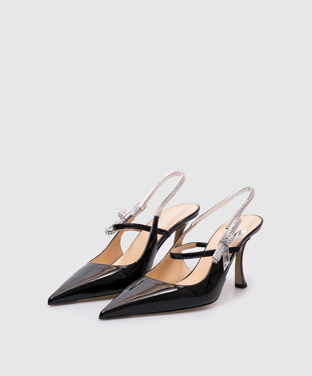 Чорні шкіряні лаковані слінгбеки з кристалами