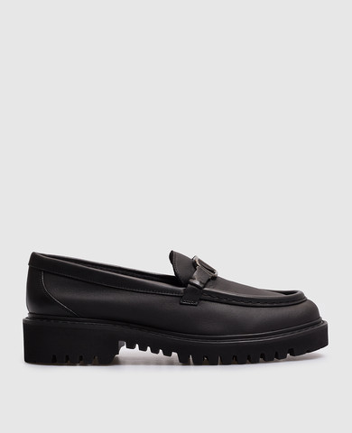 Чорні шкіряні лофери на хутрі емблемою VLogo