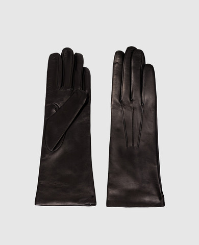 Чорні шкіряні рукавички з плетінням