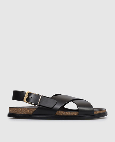 Чорні шкіряні сандалі з тисненням логотипу