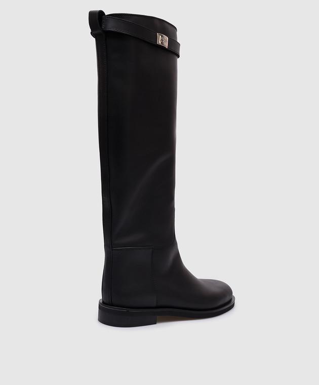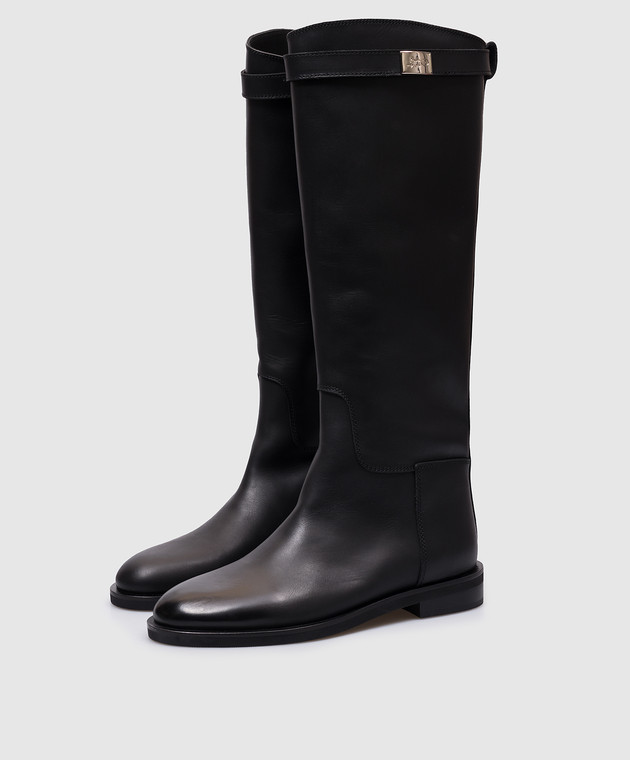 Чорні шкіряні чоботи з логотипом