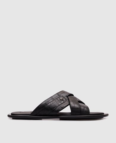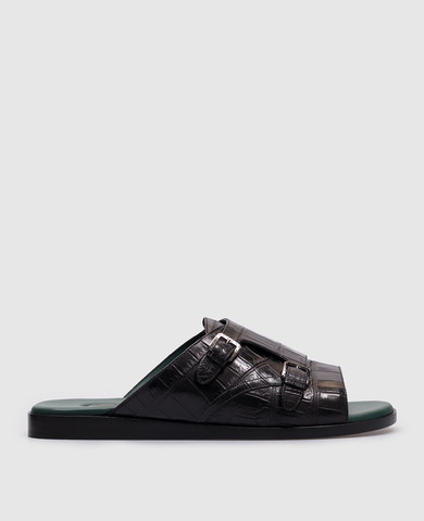Чорні шкіряні шльопанці Сhicago Сrisscross