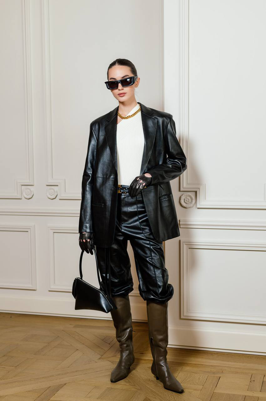Чорні шкіряні штани Zima