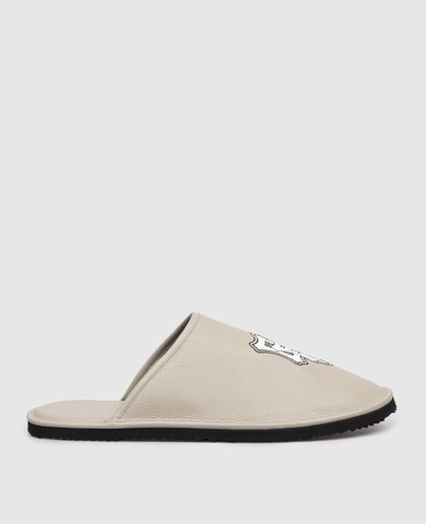 Чорні шкіряні капці з вишивкою емблеми Arrow