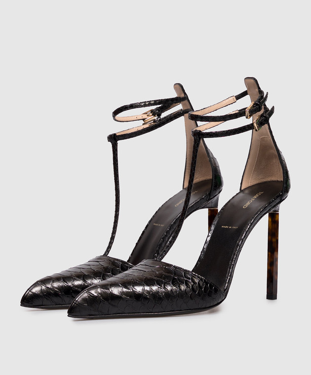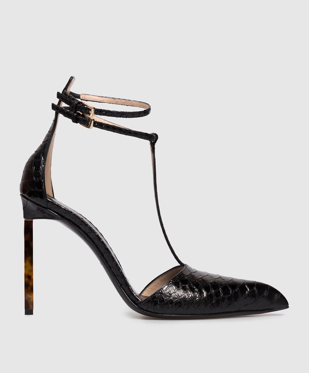 Чорні шкіряні туфлі з тисненням під шкіру рептилії
