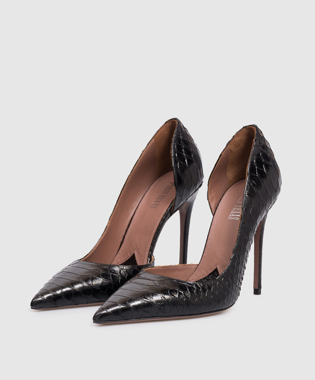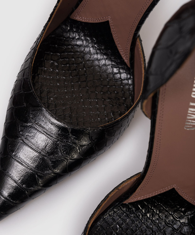 Чорні шкіряні туфлі VERA з тисненням під шкіру рептилії
