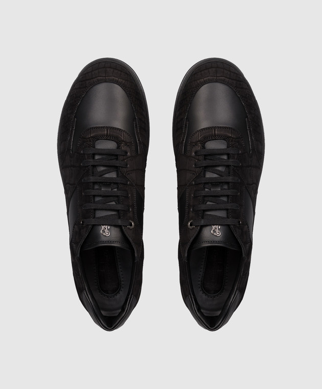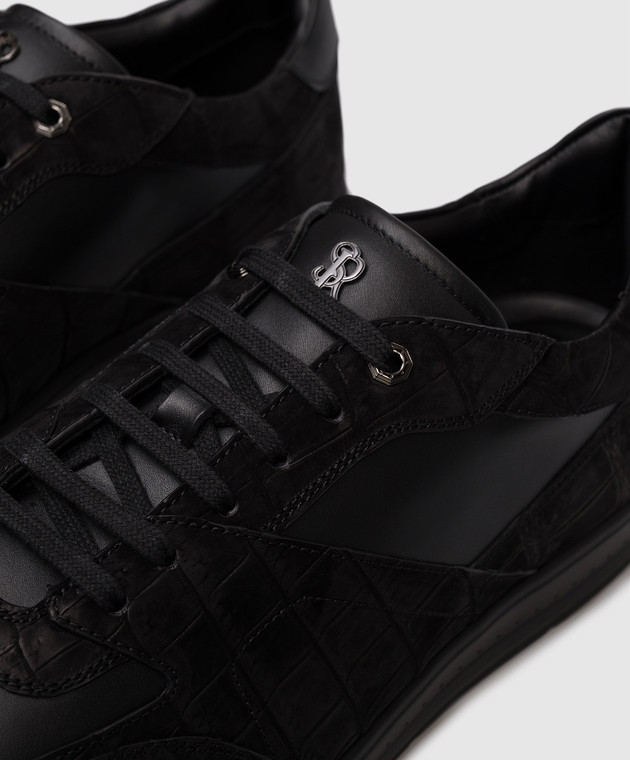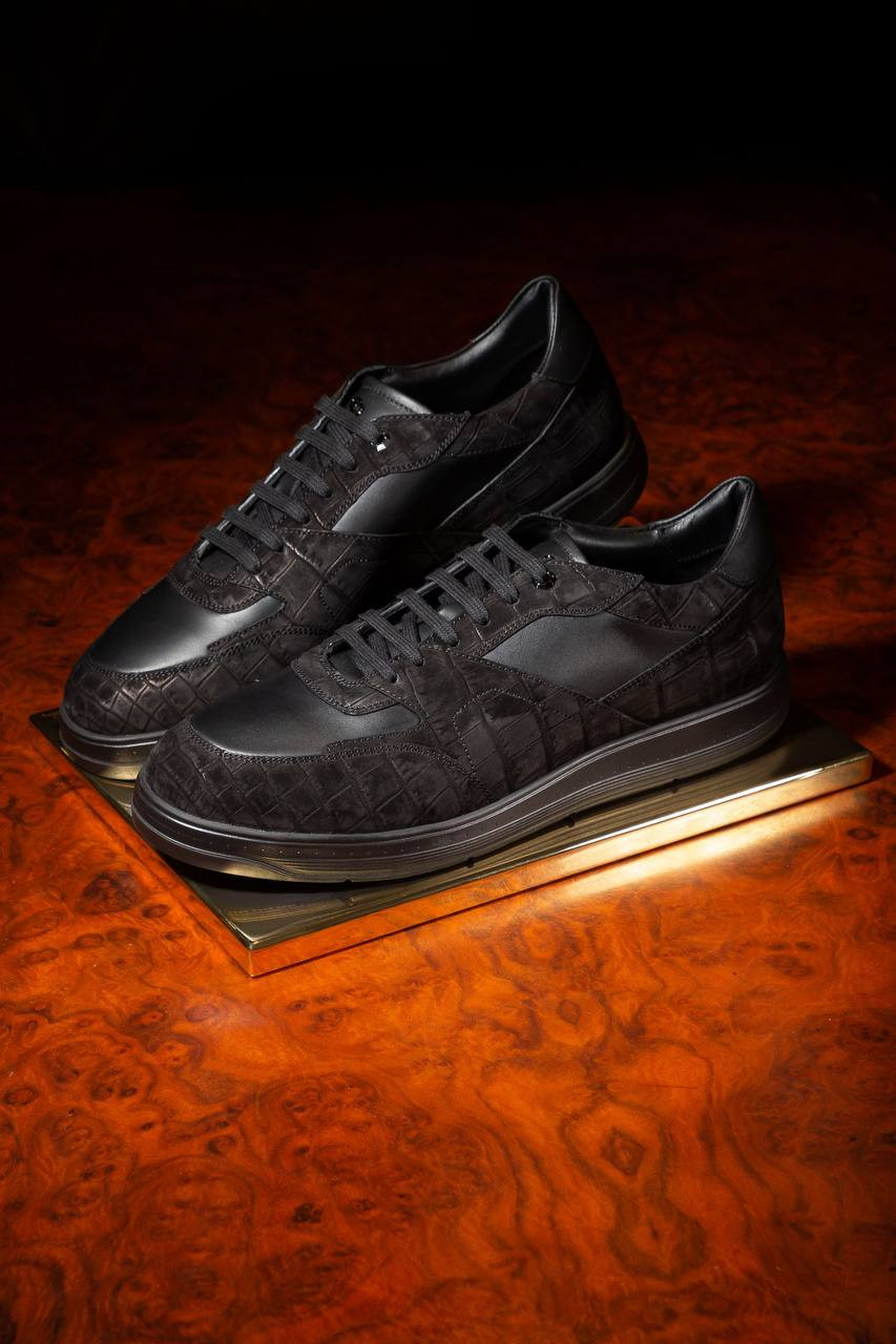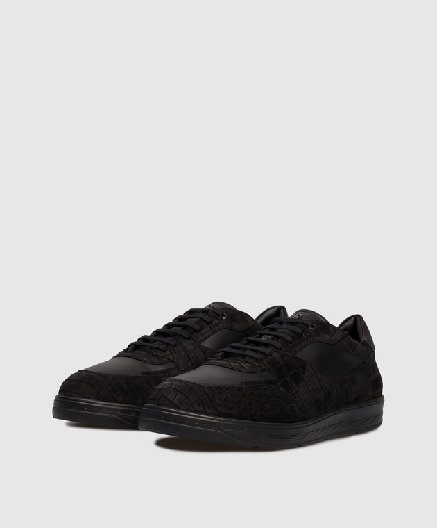 Чорні кросівки з нубуку шкіри крокодила