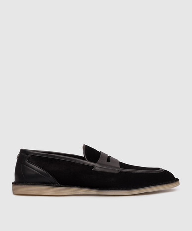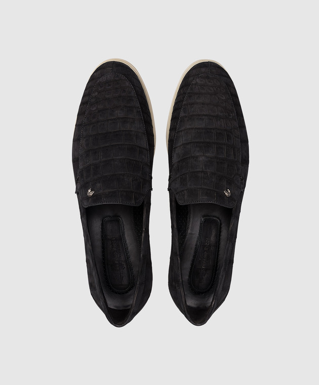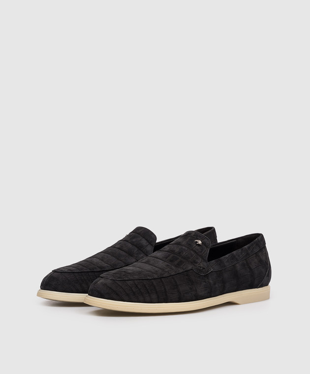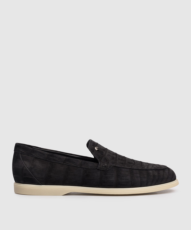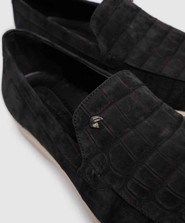 Чорні лофери зі шкіри крокодила з ефектом нубуку