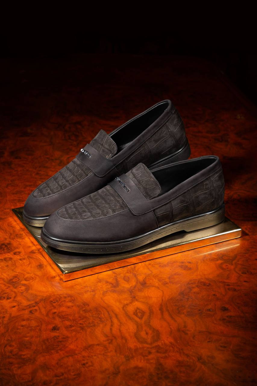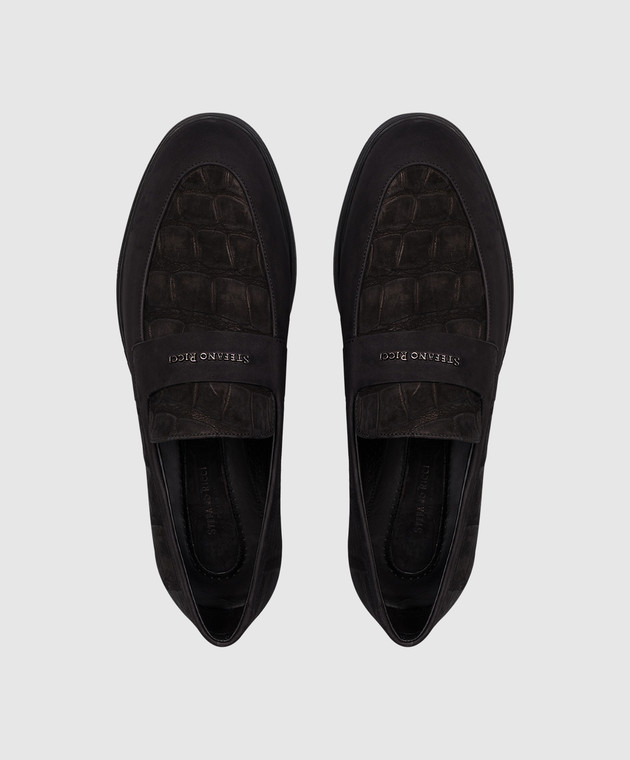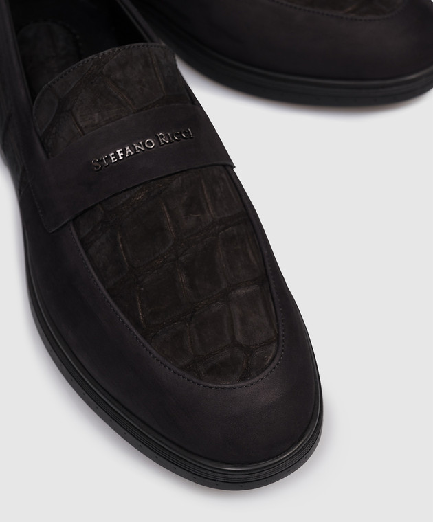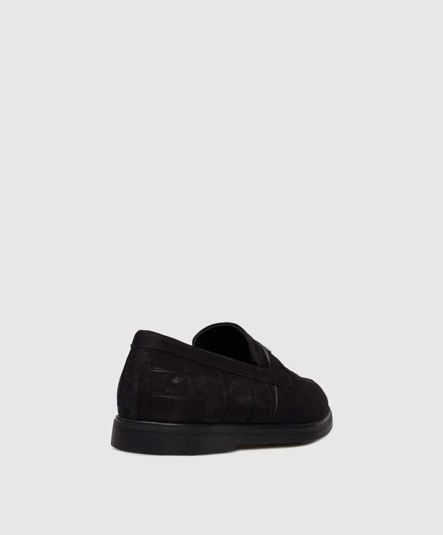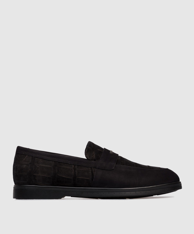 Чорні лофери з нубуку шкіри крокодила