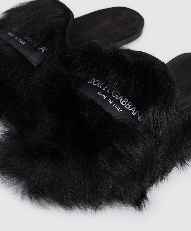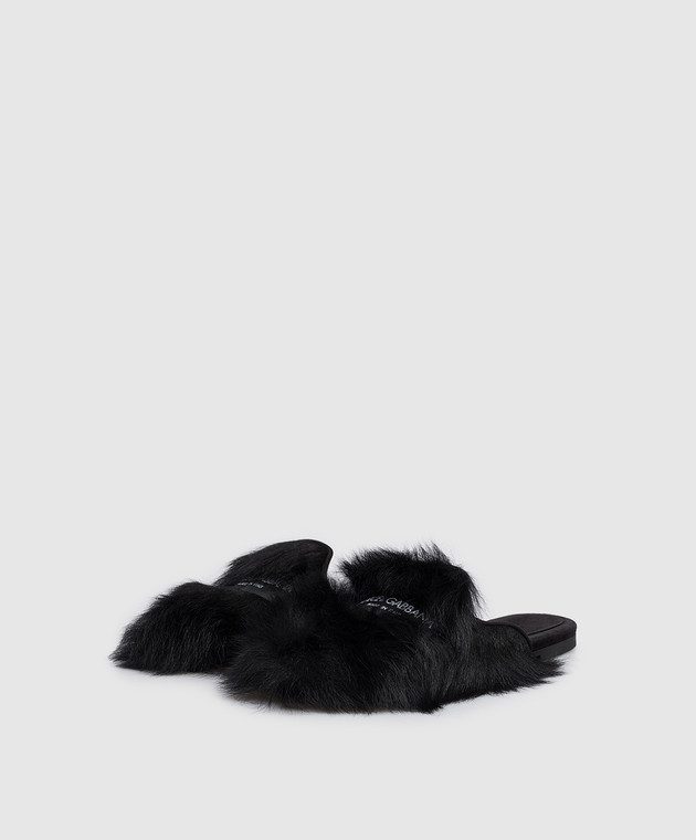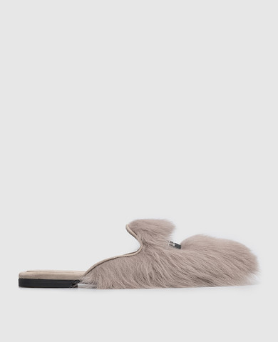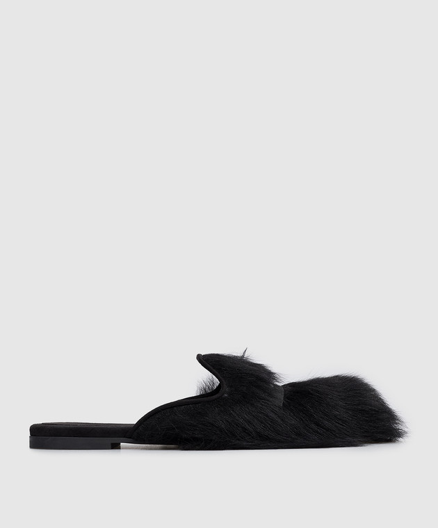Чорні мюлі з хутром овчини