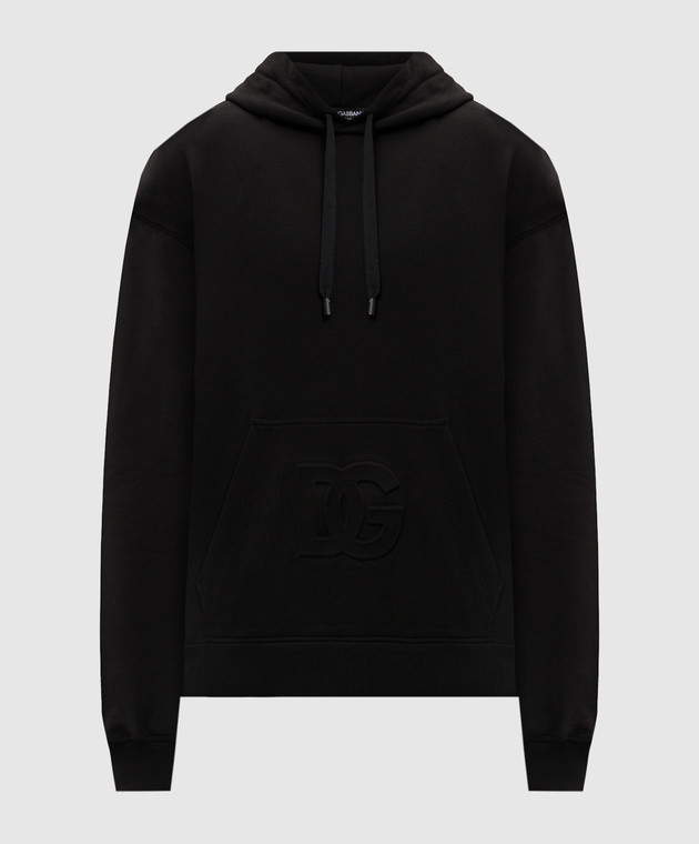 Чорне худі з фактурним логотипом