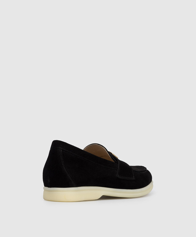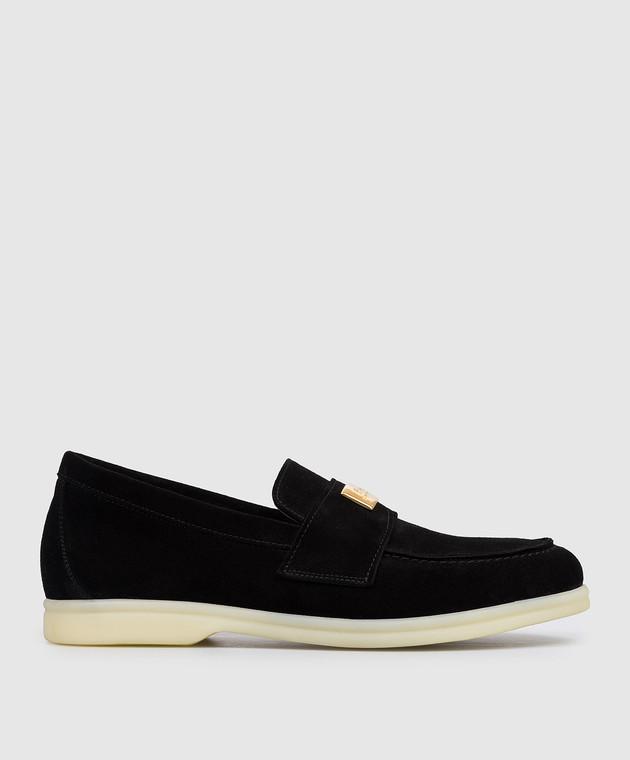 Чорні замшеві лофери з гравіюванням логотипа
