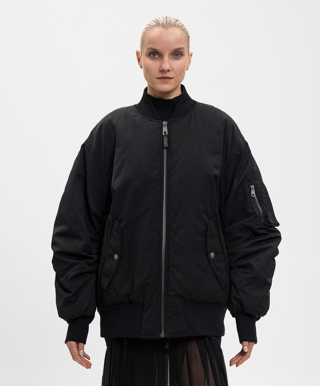 Чорний бомбер з драпіруванням