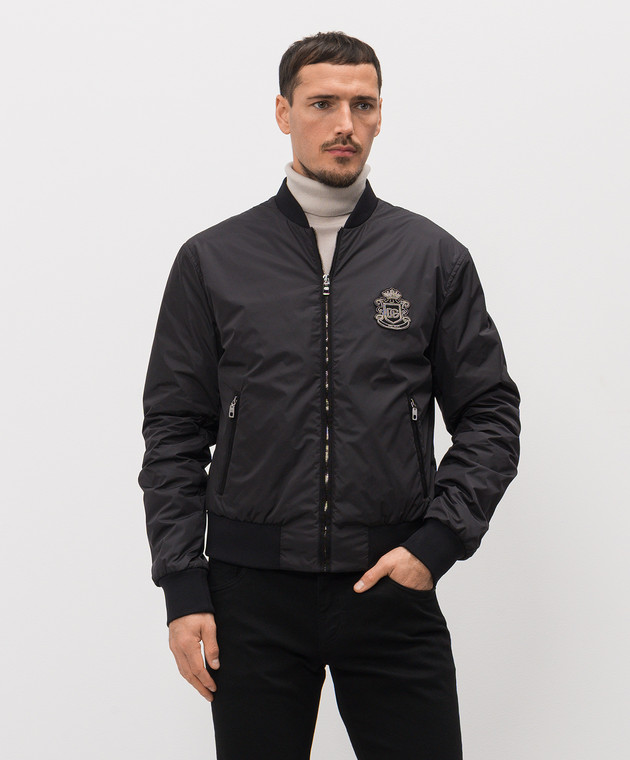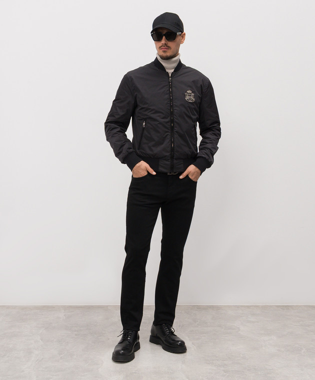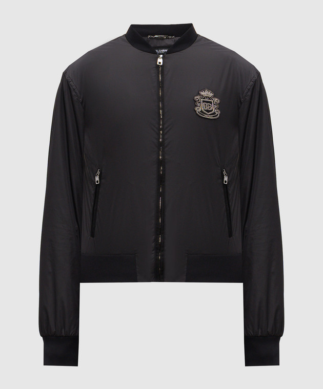 Чорний бомбер з геральдичною нашивкою логотипа