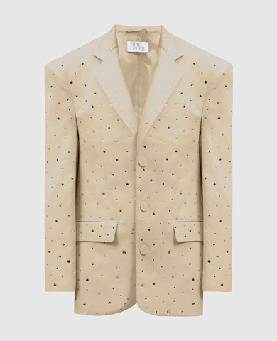 Чорний двобортний жакет з вовни з аплікацією з кристалами