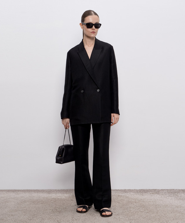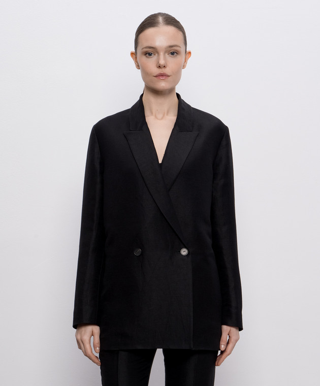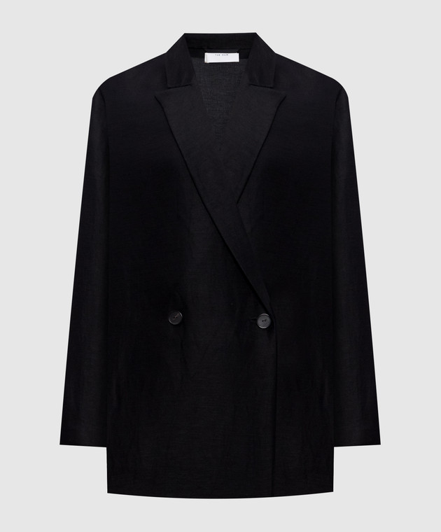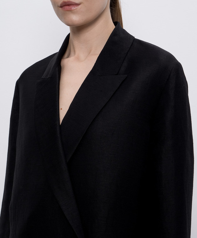 Чорний двобортний жакет Nat з льоном