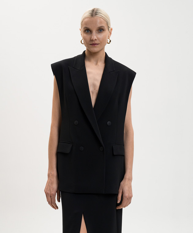 Чорний двобортний жилет з монограмою