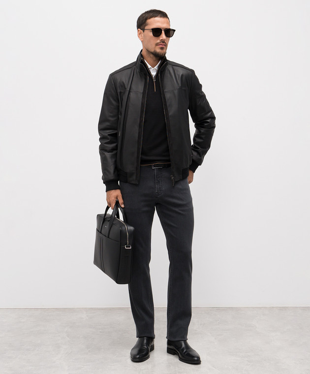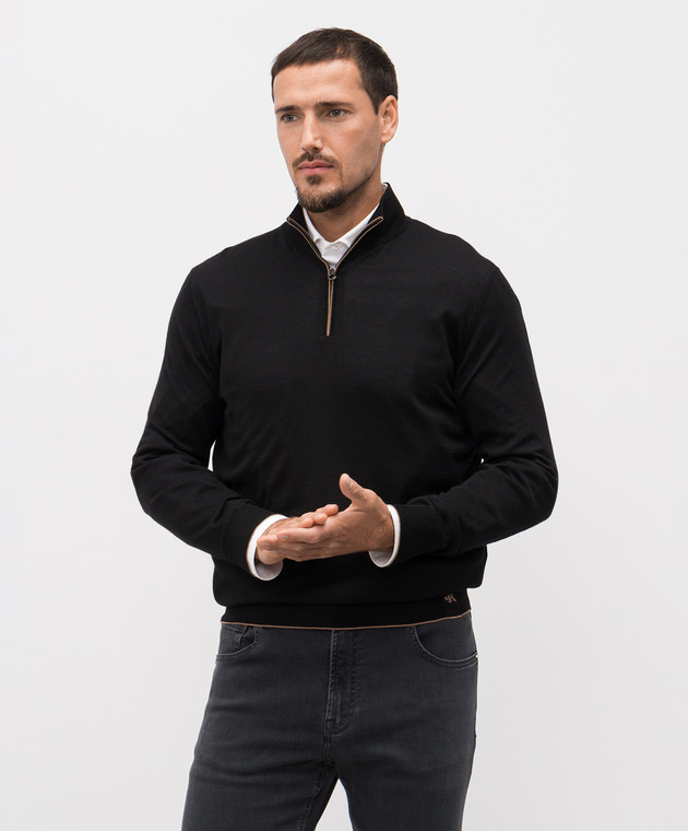 Чорний джемпер з вовни, шовку і кашеміру з логотипом