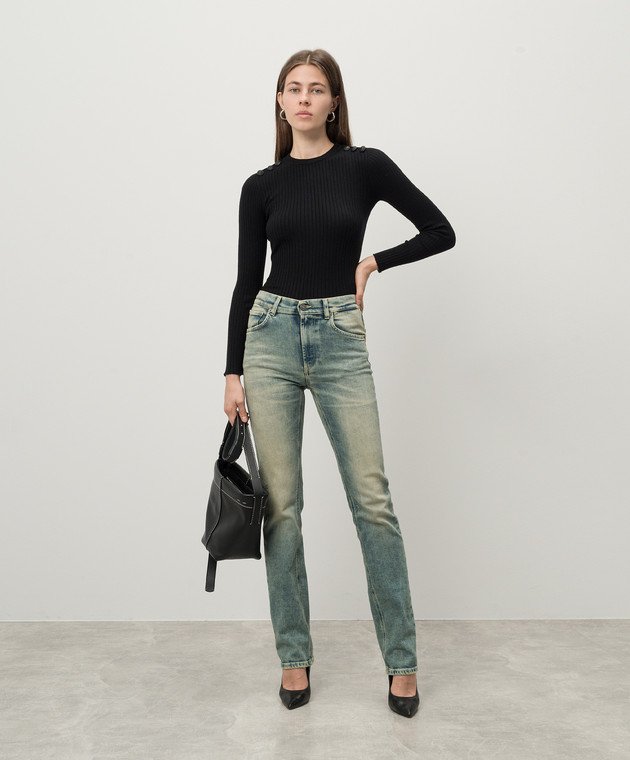 Чорний джемпер в рубчик з металевим логотипом
