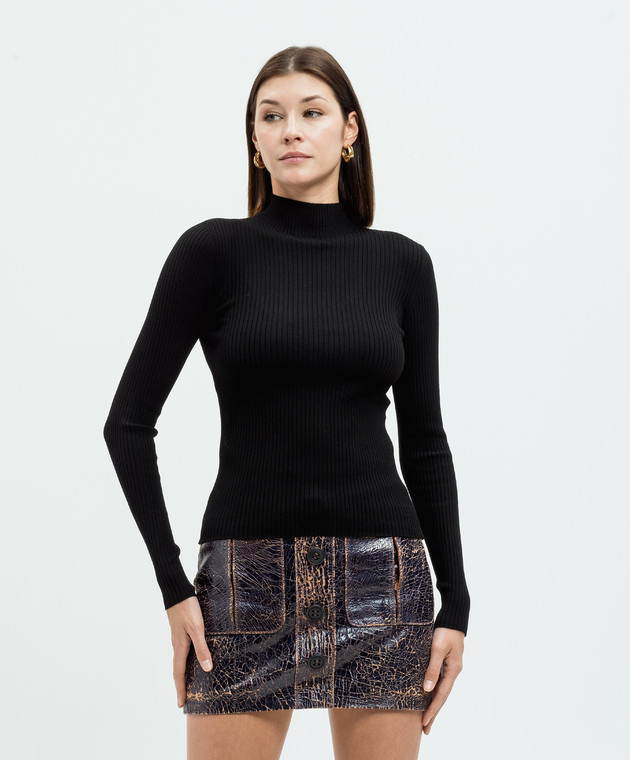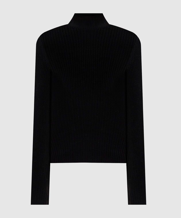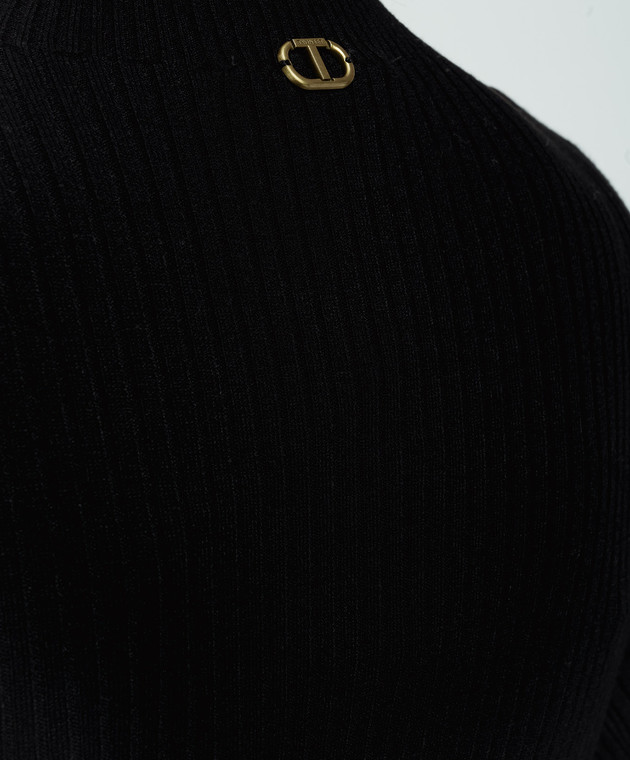 Чорний гольф в рубчик з металевим логотипом