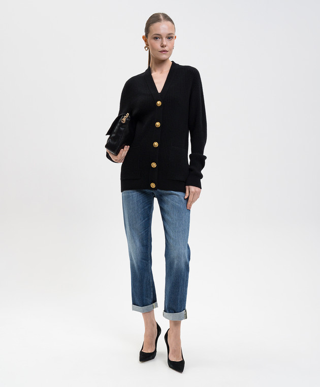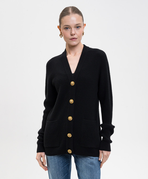 Чорний кардиган з кашеміру та вовни