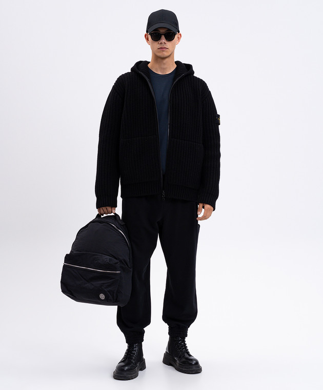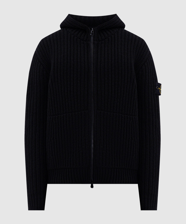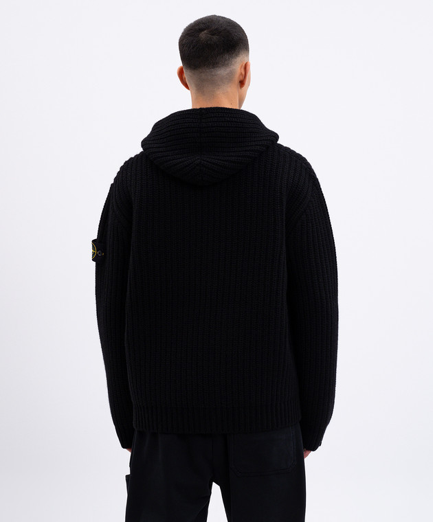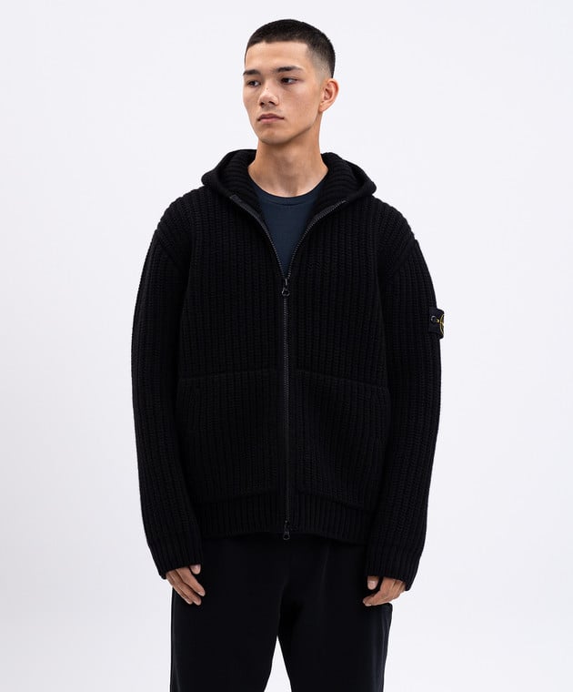 Чорний кардиган з вовни і кашеміру з капюшоном