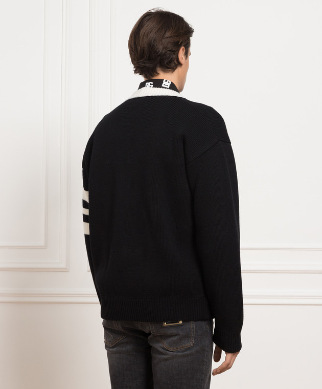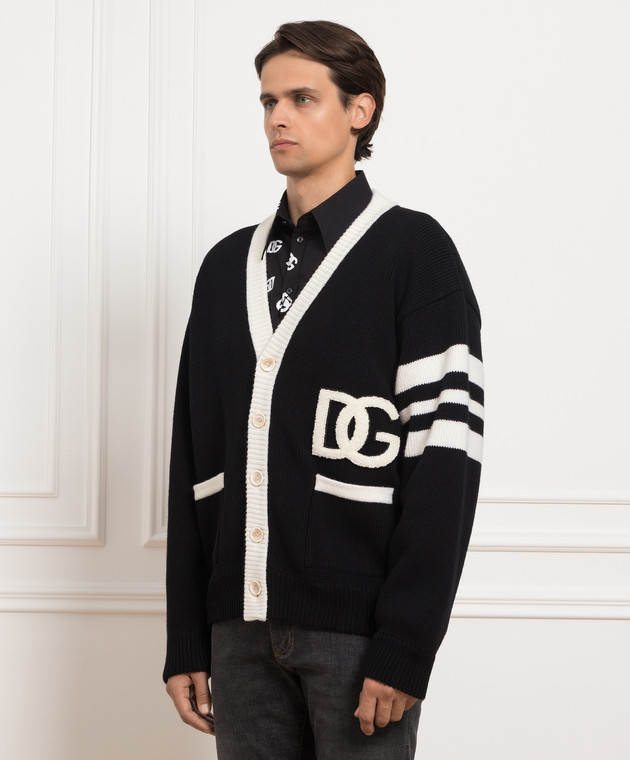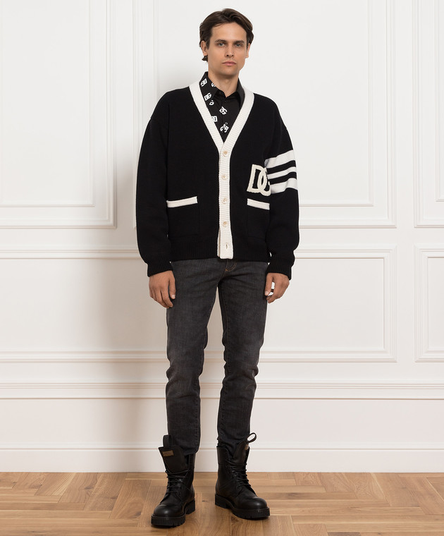 Чорний вовняний кардиган з вишивкою логотипу DG
