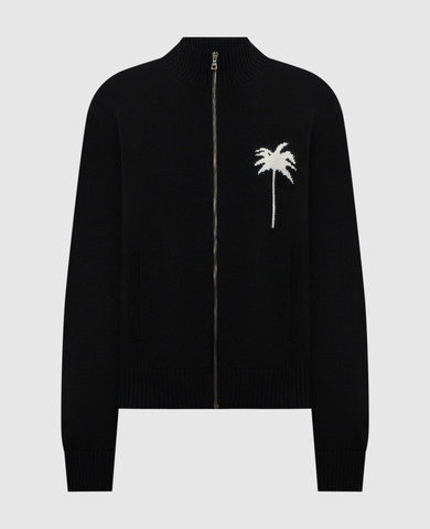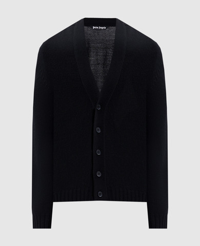 Чорний кардиган з капюшоном з вовною і кашеміром