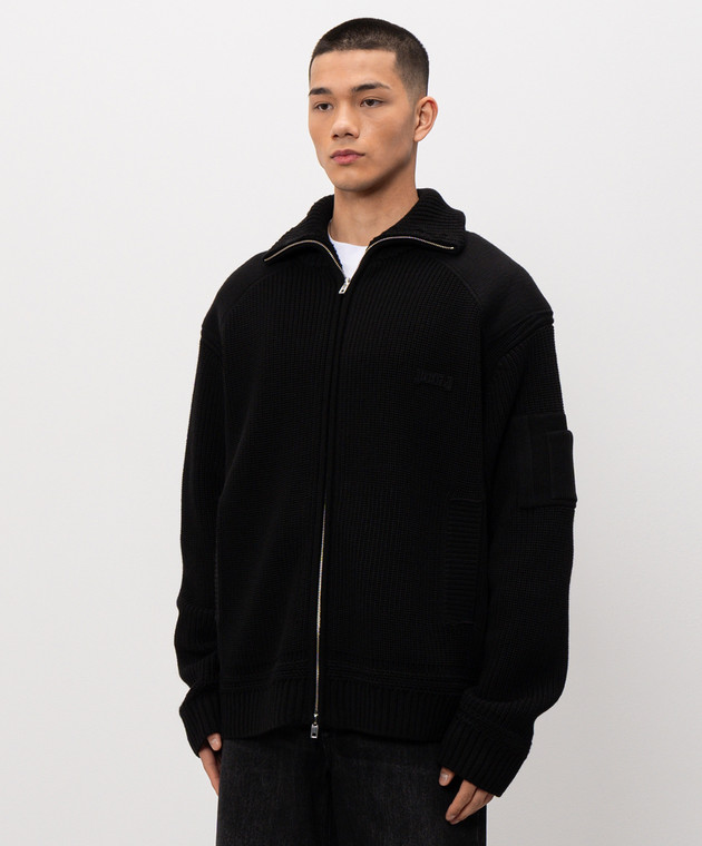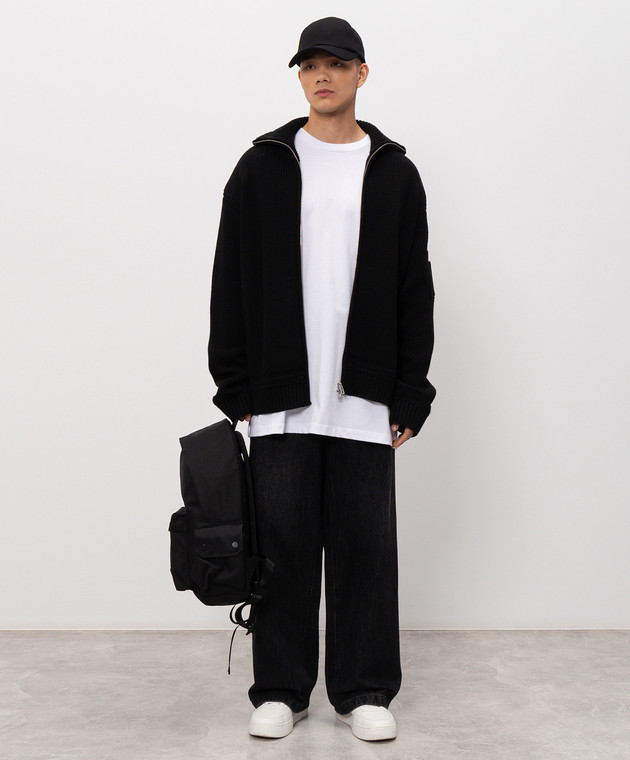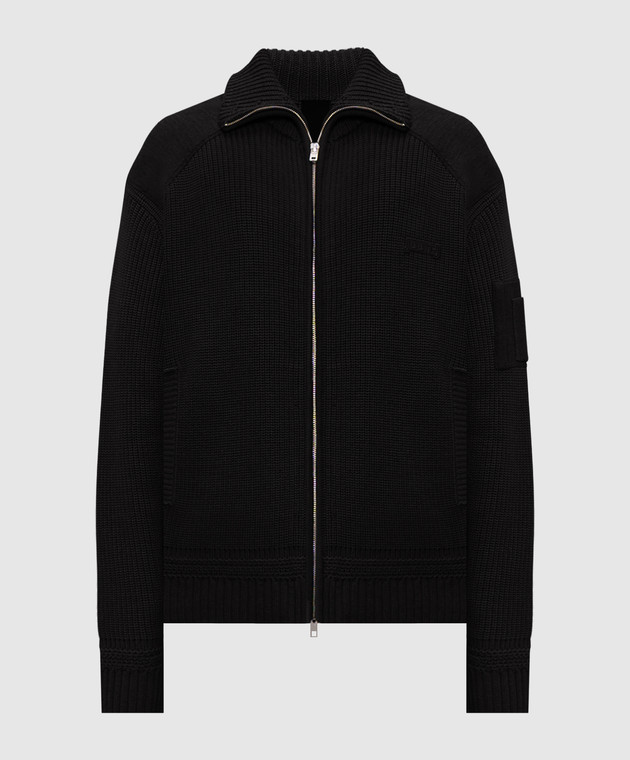 Чорний кардиган з вовною з логотипом