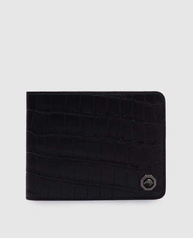 Чорний картхолдер зі шкіри крокодила з металевим логотипом