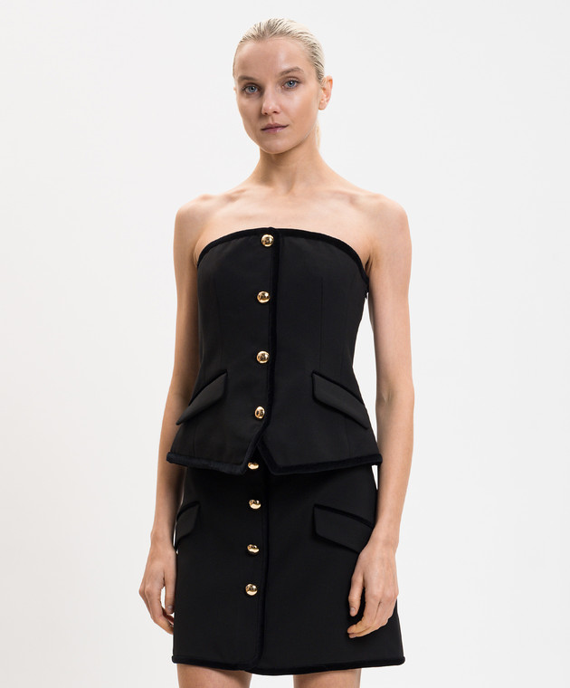 • Декор контрастна фурнітура, оксамитове окантування, асиметричний низ, шліца