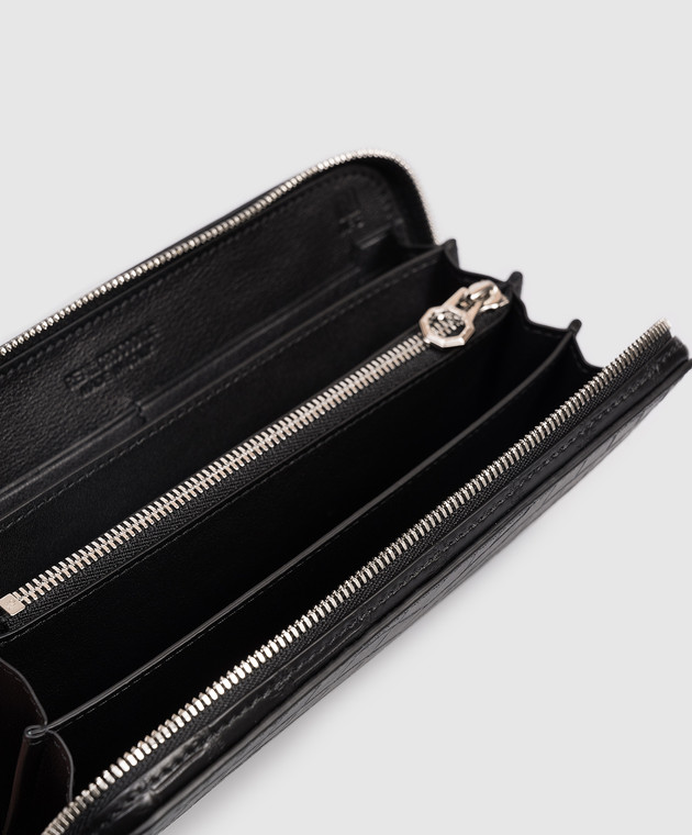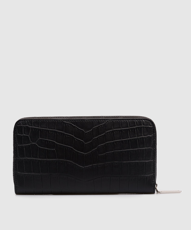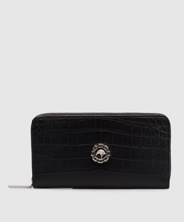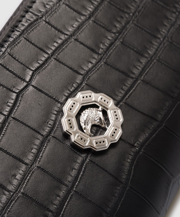 Чорний гаманець зі шкіри крокодила з емблемою з палладієвим покриттям