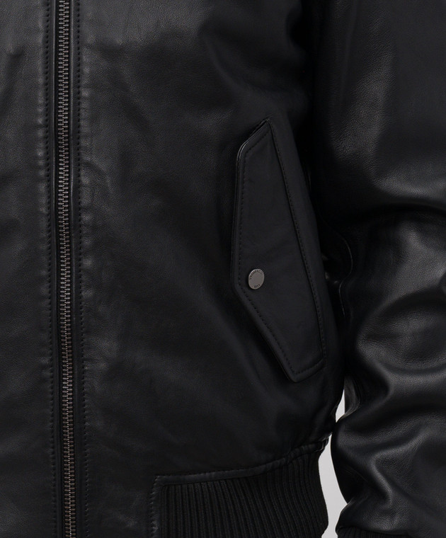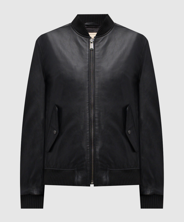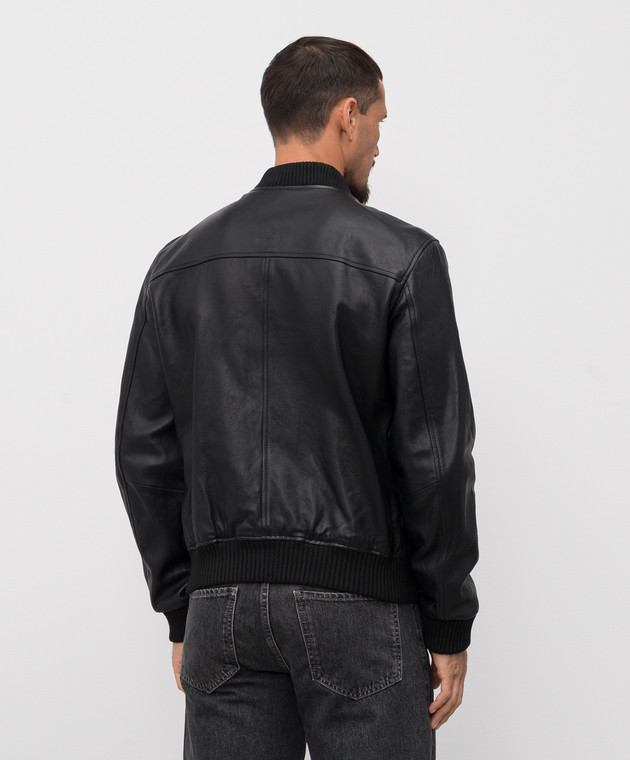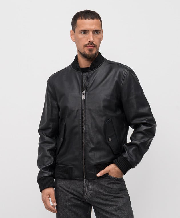 Чорний шкіряний бомбер з логотипом