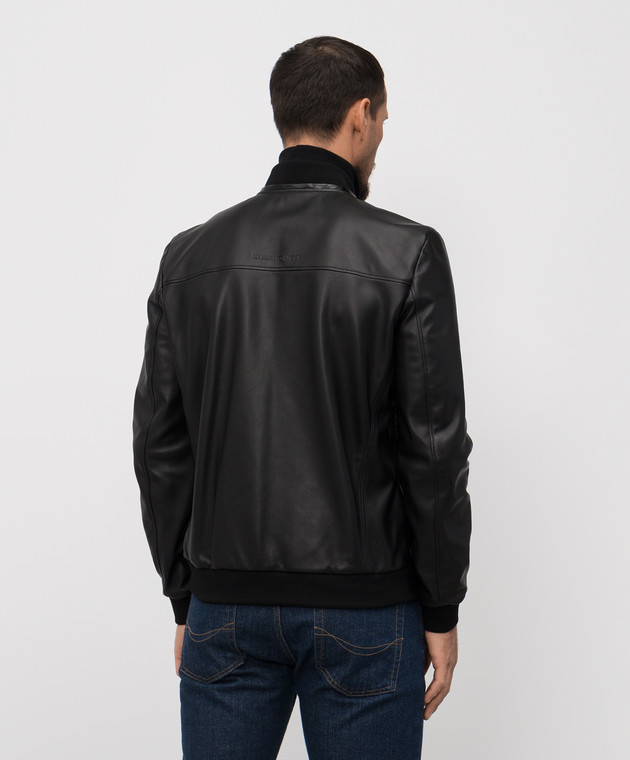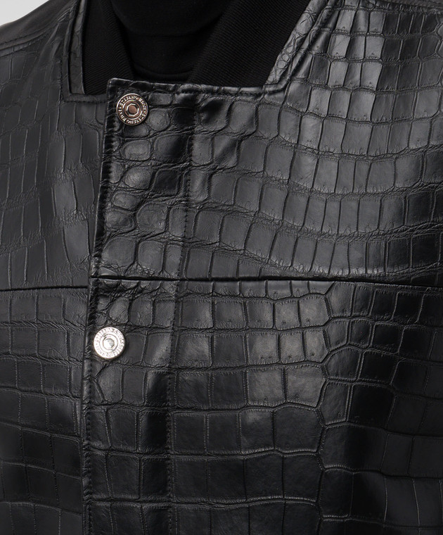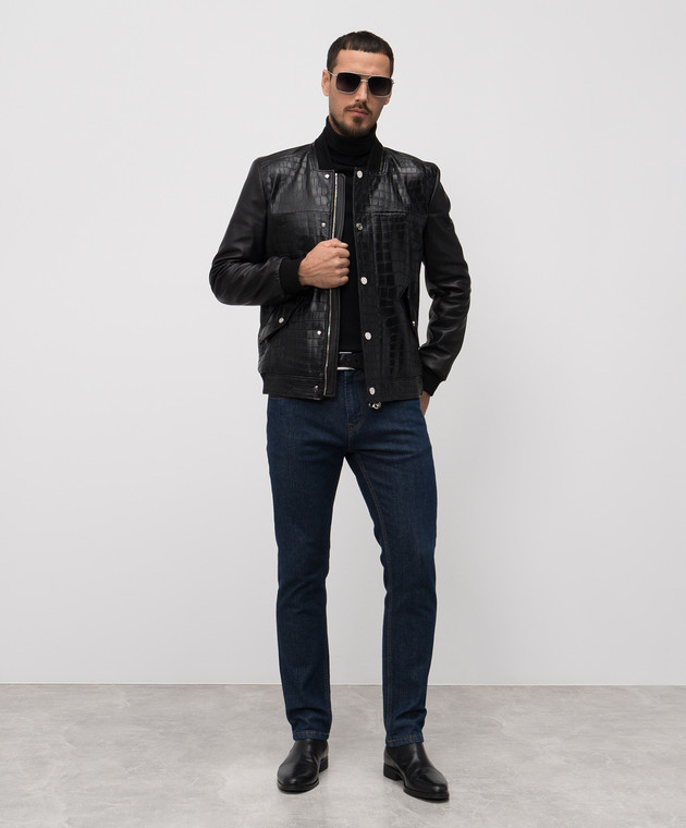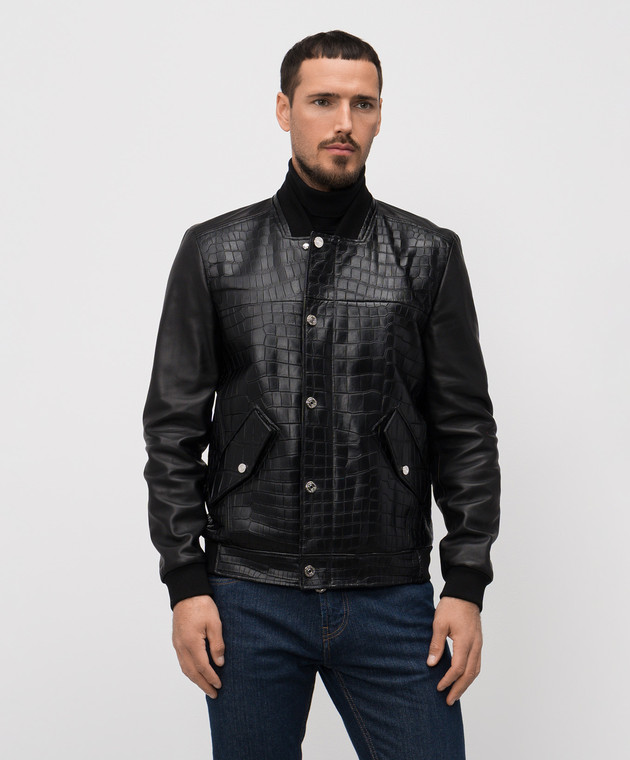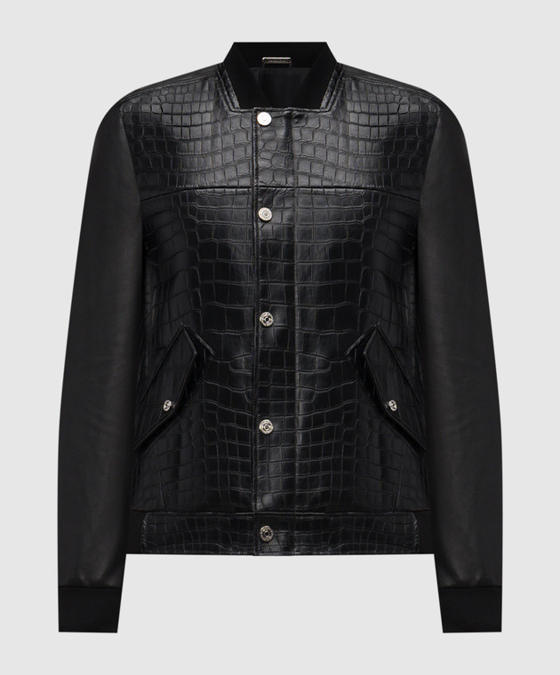 Чорний шкіряний бомбер з вставками зі шкіри крокодила