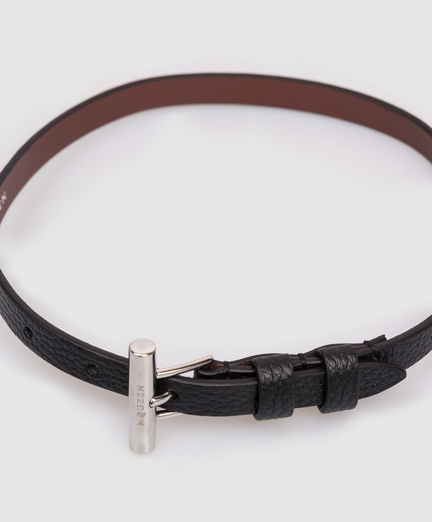 Чорний шкіряний браслет з логотипом