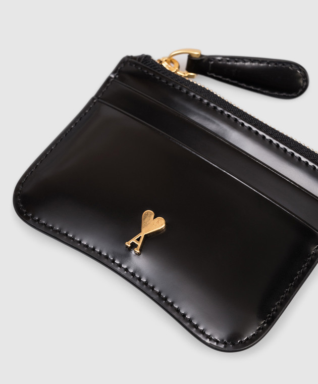 Чорний шкіряний глянцевий картхолдер Paris
