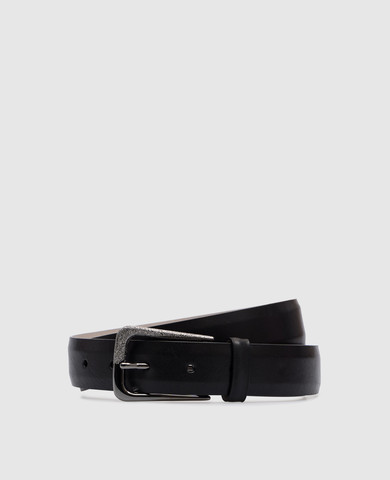 Чорний шкіряний глянцевий ремінь з ланцюжком моніль