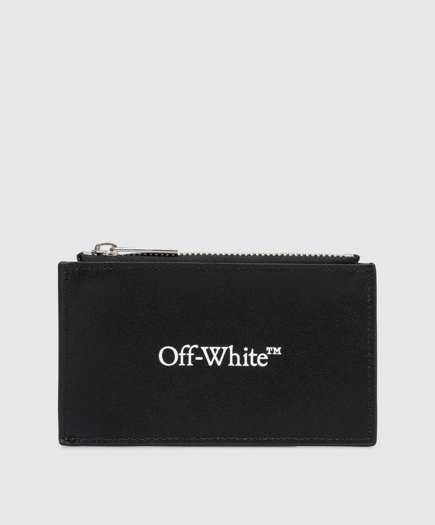 Чорний шкіряний картхолдер з принтом логотипа