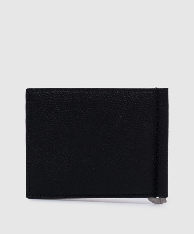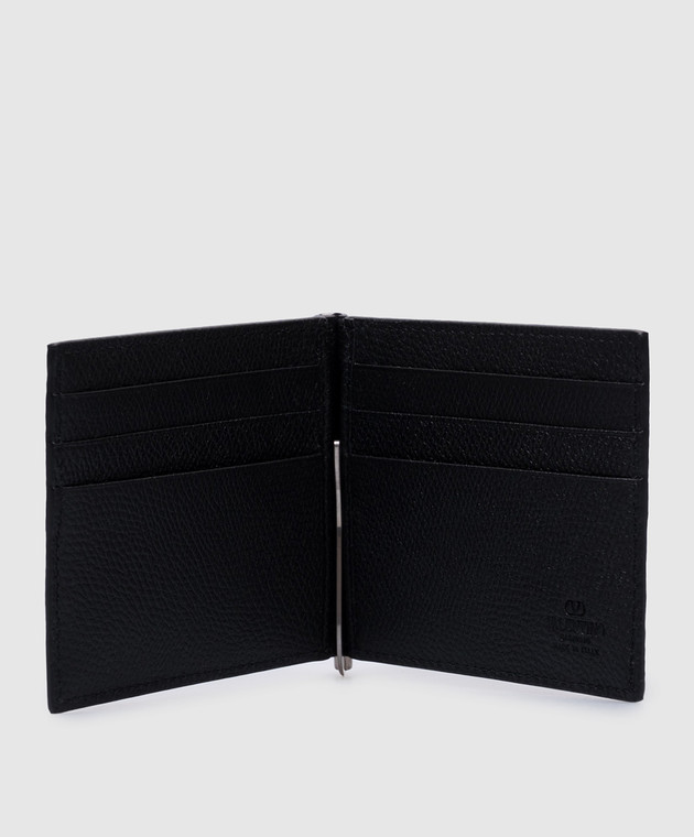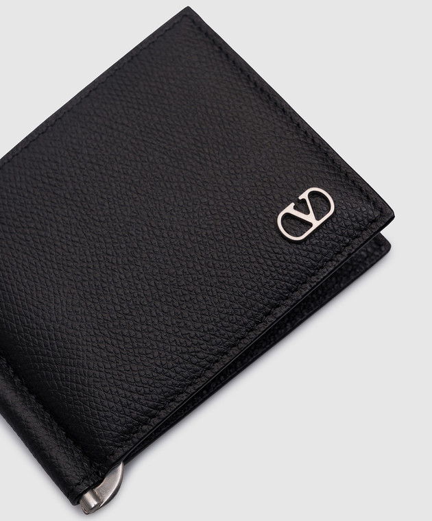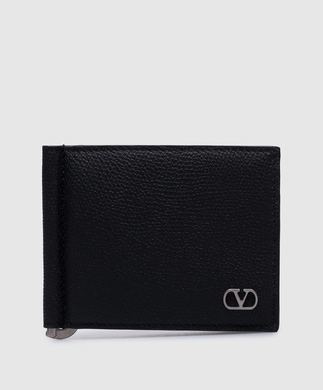 Чорний шкіряний картхолдер із затискачем для купюр з емблемою логотипа VLogo Signature