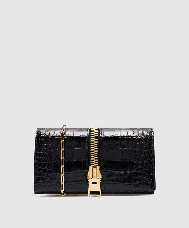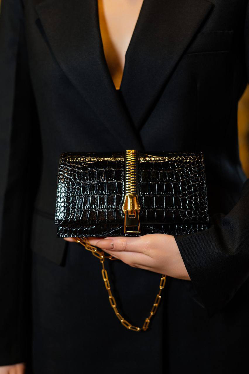 Чорний шкіряний клатч Jennifer з тисненням під шкіру крокодила