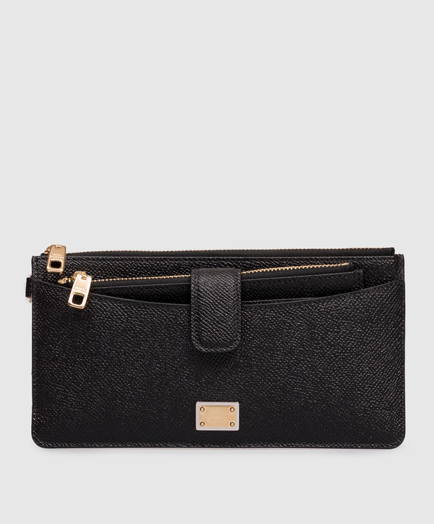 Чорний шкіряний гаманець з гравіюванням логотипа