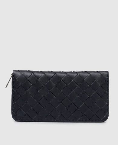 Чорний шкіряний гаманець в тиснення монограми логотипа
