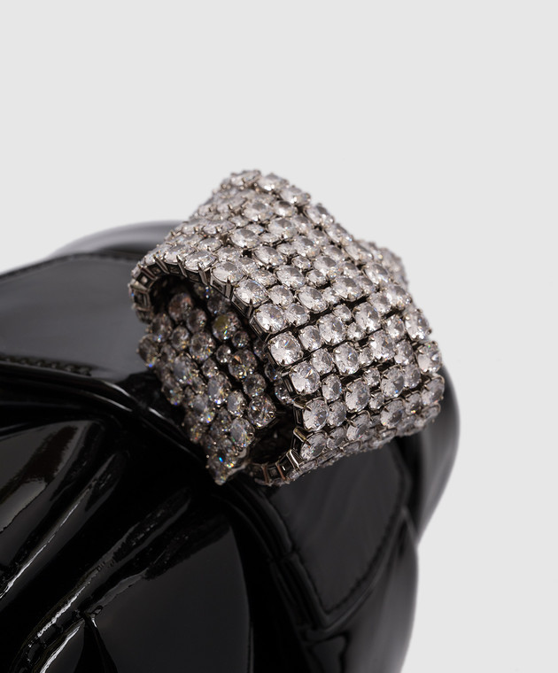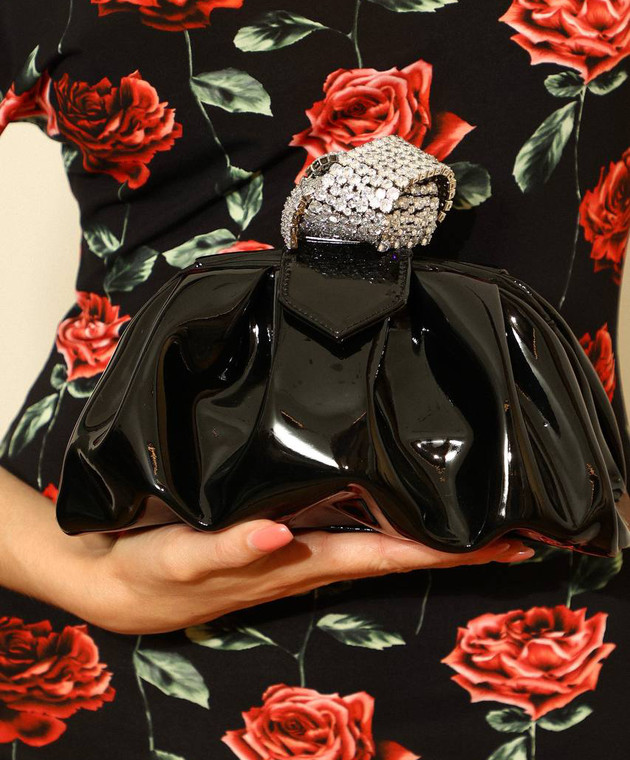 Чорний шкіряний лакований клатч Tobiko з кристалами