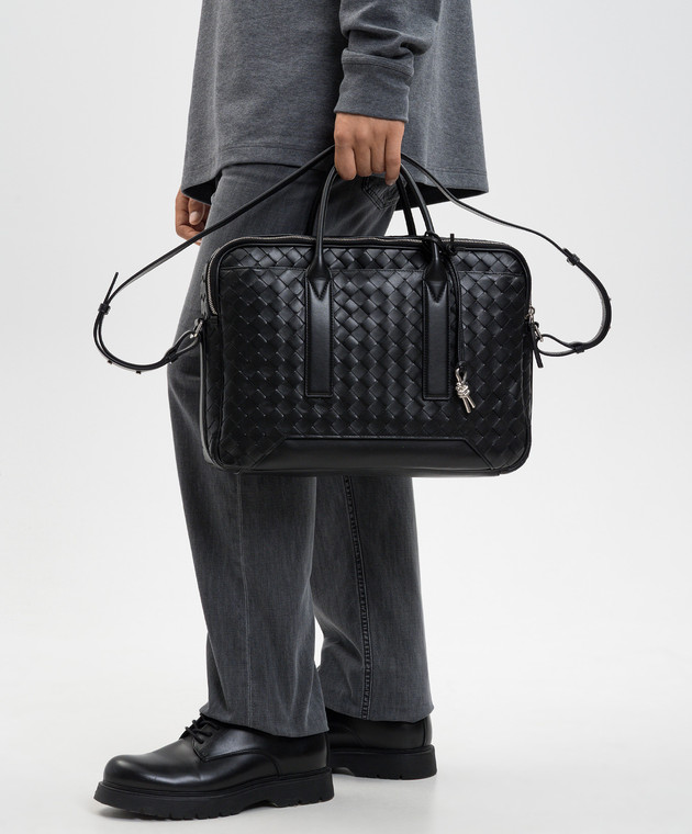 Чорний шкіряний портфель