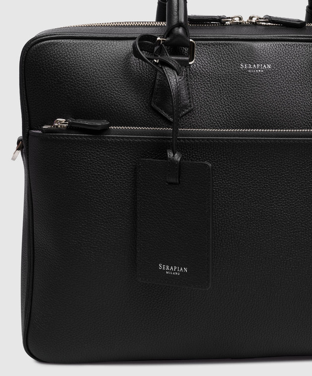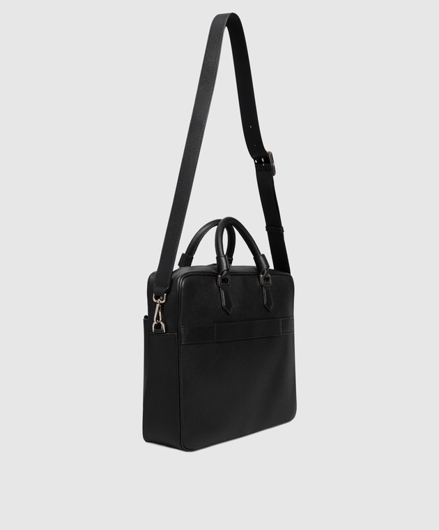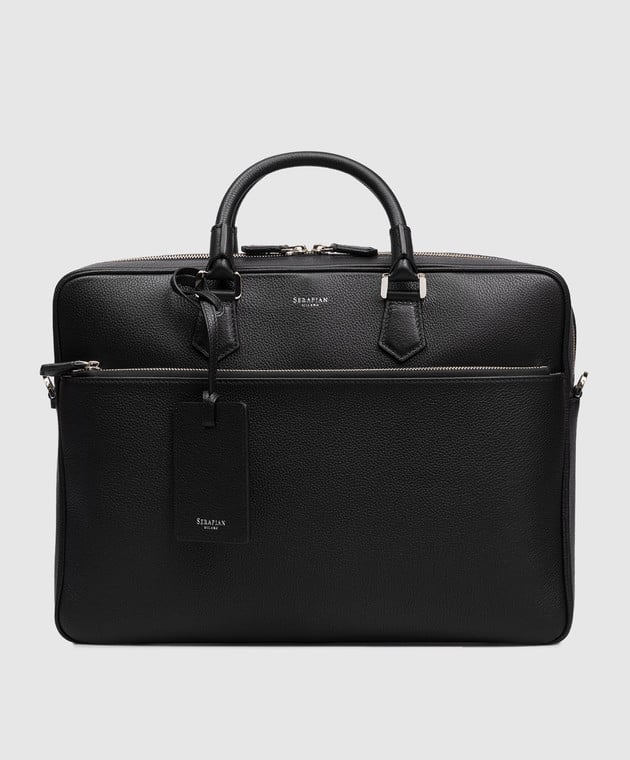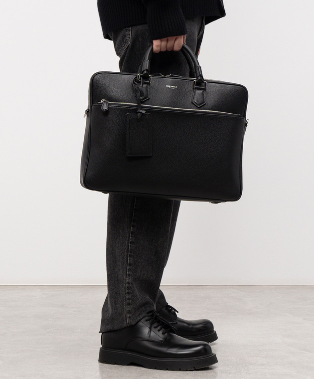 Чорний шкіряний портфель з логотипом