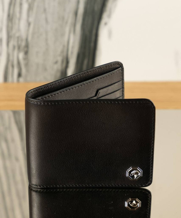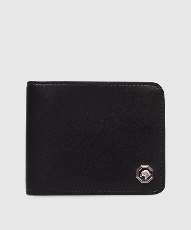 Чорне шкіряне портмоне з металевою емблемою у вигляді голови орла