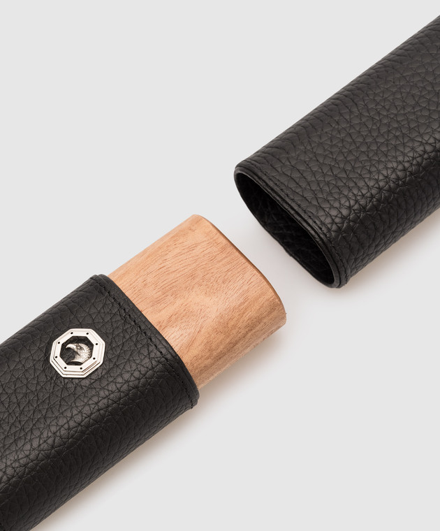 Чорний шкіряний портсигар з логотипом у вигляді голови орла