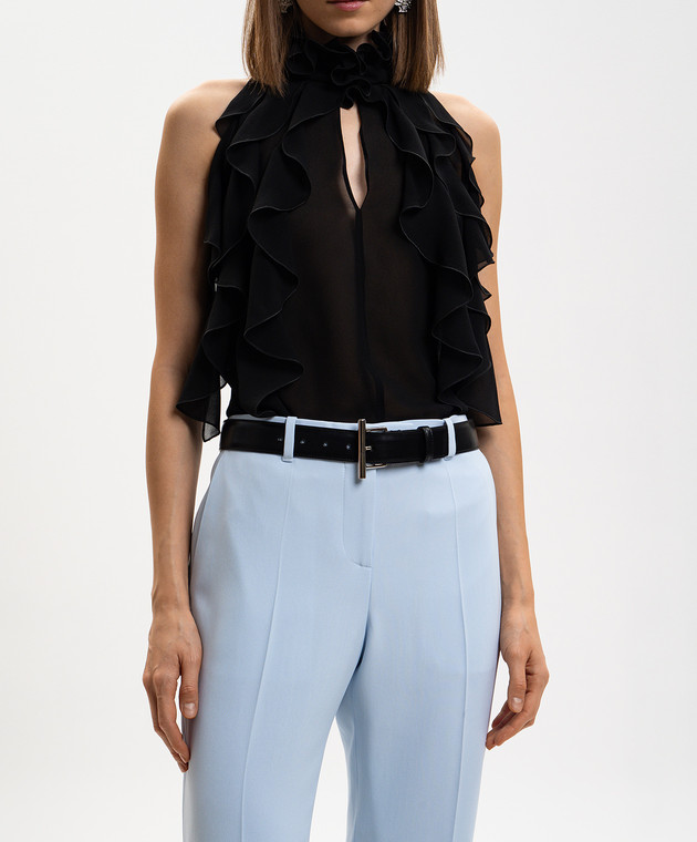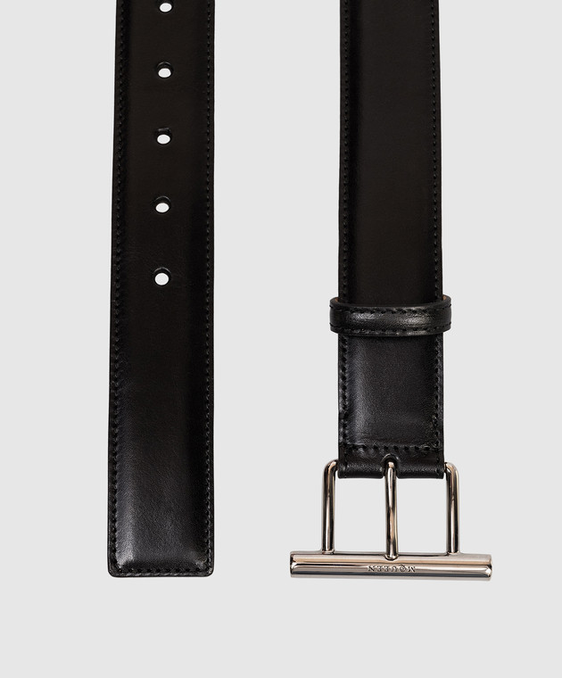 Чорний шкіряний ремінь з гравіюванням логотипа
